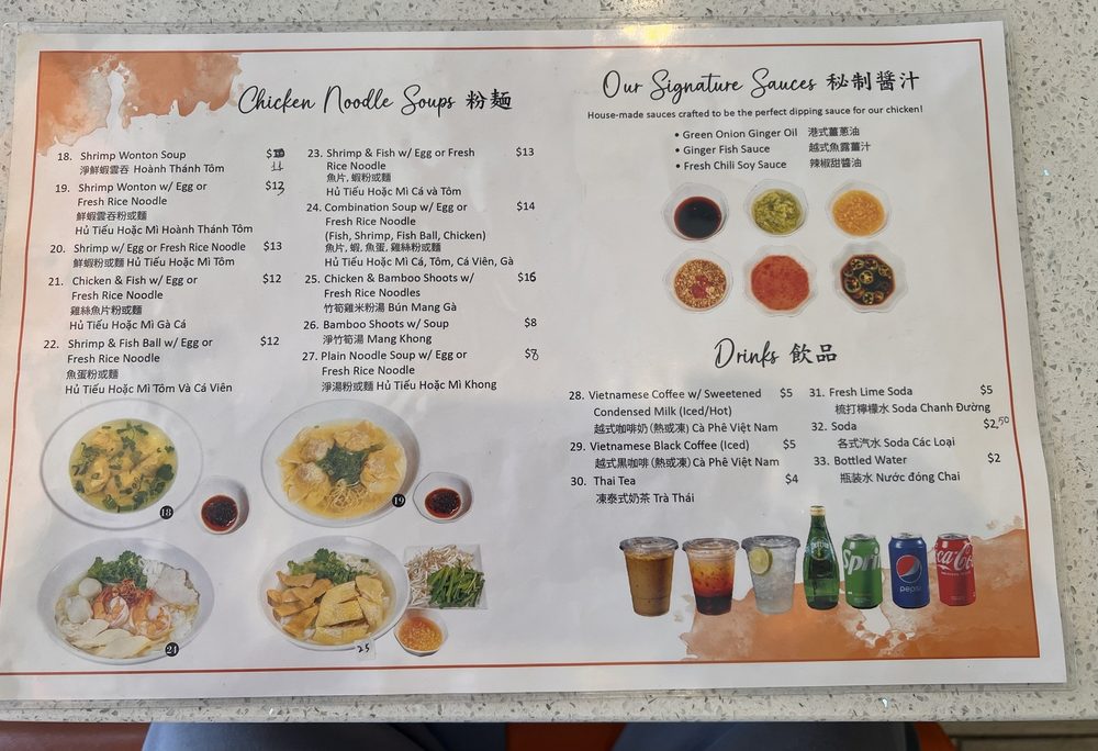 Signature dishes such as the Hainan Chicken Rice are a must-try. The rice, subtly infused with chicken broth, paired with a choice of homemade dipping sauces, is pure comfort food. Don't miss their rich and flavorful Chicken Noodle Soup, featuring fresh rice noodles and a variety of proteins that ensure each spoonful is satisfying.